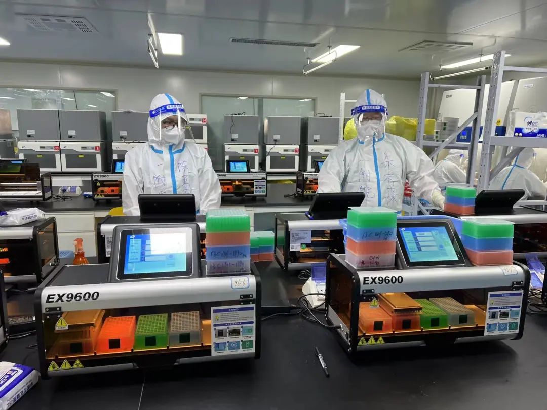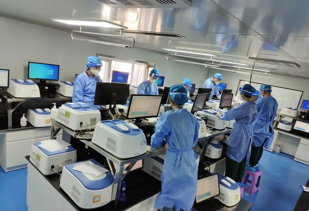 自治区核酸检测中心(Beat365中国唯一官方网站PCR生物实验室)专家团队在奔赴库尔勒市当天,就立即投入工作,快速完成核酸检测实验室的改造及设备安装调试和实验性能验证,第二天进入试运行,第三天便正式运行,核酸检测实验室每天最高可以承担5万余管的检测任务。