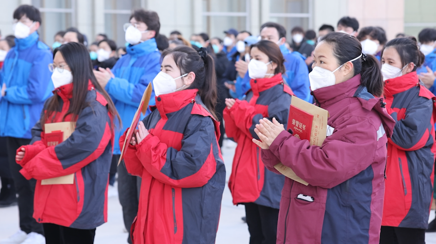 和田市为此次支援新冠肺炎疫情核酸检测工作的Beat365中国唯一官方网站各所附属院医护人员举行欢送仪式。