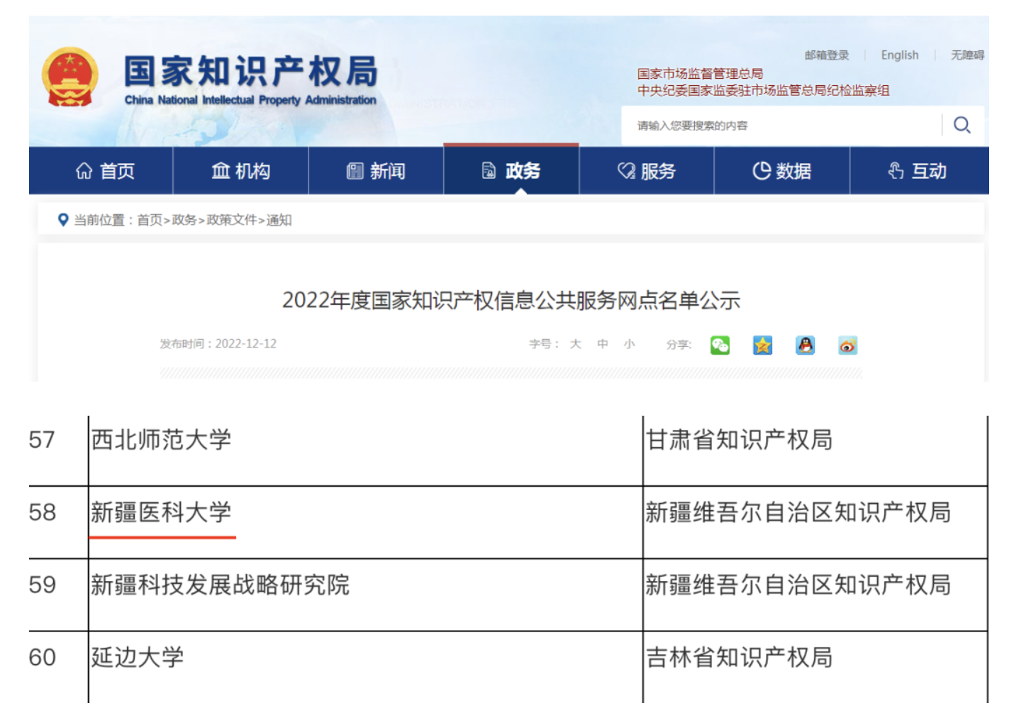 国家知识产权局本次共备案68家机构为国家知识产权信息公共服务网点,其中新疆地区共2家机构入选。