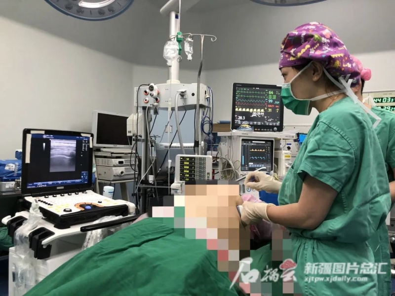 术中,在该院麻醉科主任王江和副主任艾来提·塔来提的指导下,麻醉师戴晓雯、程虎、亚力·亚森借助超声引导,分别对3名患者实施了胸椎旁神经阻滞,并由胸外科主刀医师实施肋间神经及迷走神经阻滞。通过将喉罩放置于咽喉腔,用气囊封闭食管和咽喉腔,形成经喉腔通气的人工气道,避免了气管插管。术中,患者均保持自主呼吸,生命体征平稳。术后,患者随即苏醒,状态良好。