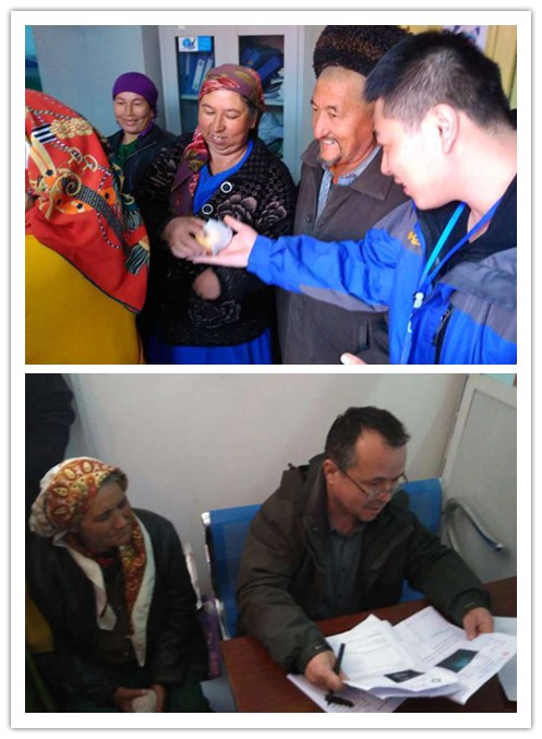 4岁的艾丝曼是个眼睛会说话的漂亮小女孩儿,好几个月了总是吃不下饭,身体比同龄孩子瘦小很多。艾大夫望闻问切,初步诊断是维生素缺乏,对症下药开了处方。海比尔·托乎提老人多年受胆囊炎困扰,只觉身体不适,却没有条件去医院问诊,艾大夫很快诊断清楚,病虽不严重,治疗不能耽搁,艾大夫给墨玉县医院肝胆科的同行打通电话,嘱咐老人尽快去医院正规治疗。