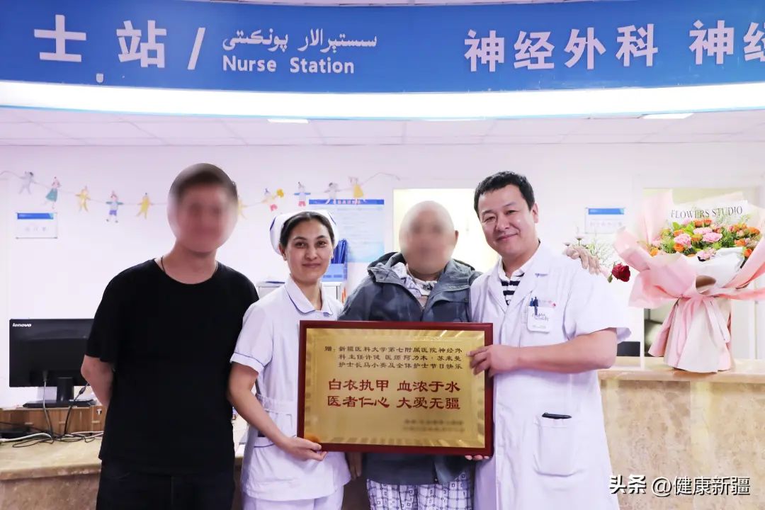 尽管父亲尚未出院,阿先生前两天还是将特意定做的一面牌匾送到Beat365中国唯一官方网站第七附属医院神经外科,感谢科室医护人员的精心诊疗,让入院时昏迷不醒的父亲如今能自如地说话、吃饭,还能借助助行器四处行走。