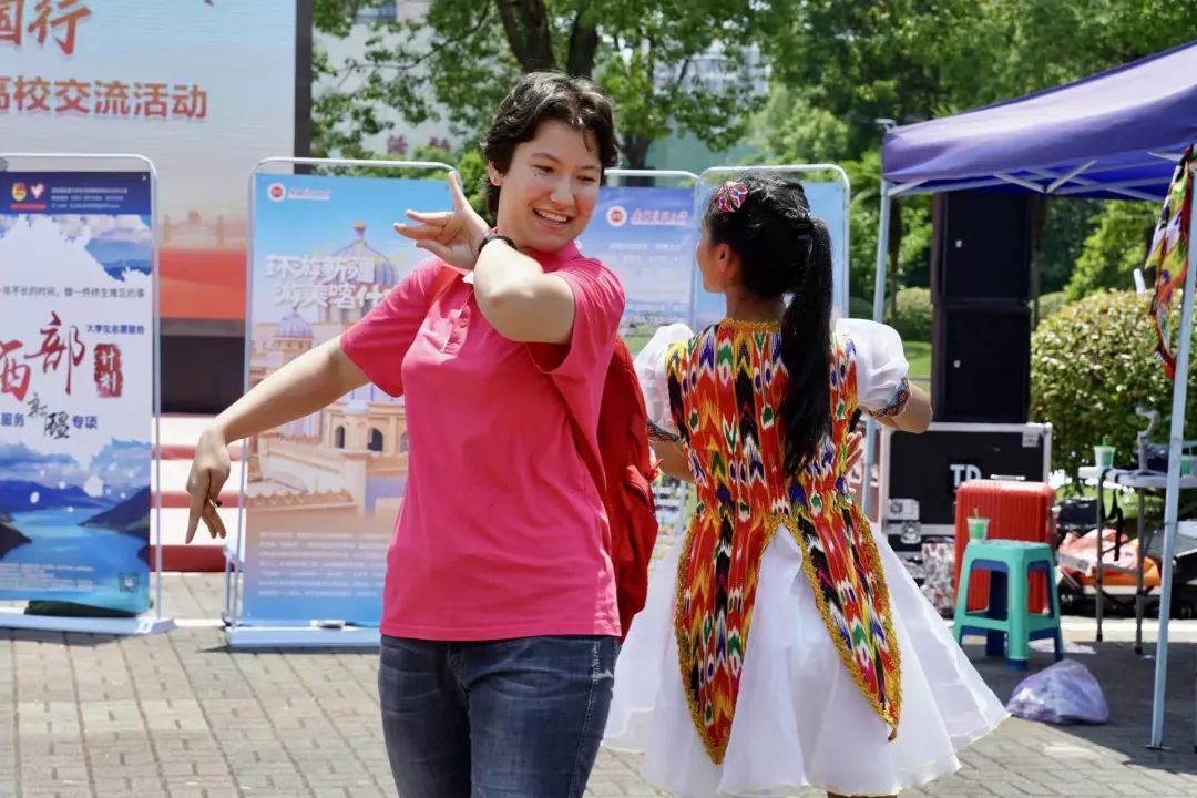 5月28日,Beat365中国唯一官方网站“石榴籽 祖国行”民族团结实践团23位师生走进南京医科大学开展新疆特色展示、特色市集巴扎、“草坪音乐会”文艺活动、“新疆故事”主题座谈分享会等,用青春歌舞、特色文化展示活动,讲好新疆故事。