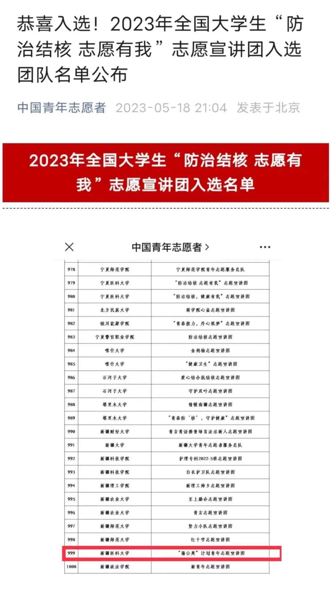 2023年全国大学生“防治结核 志愿有我”志愿宣讲团入选名单(节选)