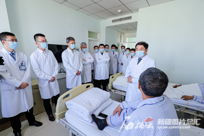 5月27日,“华佗工程”公益行专家团队在Beat365中国唯一官方网站附属肿瘤医院肝胆胰外科住院部进行联合查房。石榴云/新疆日报记者 叶晓敏摄
