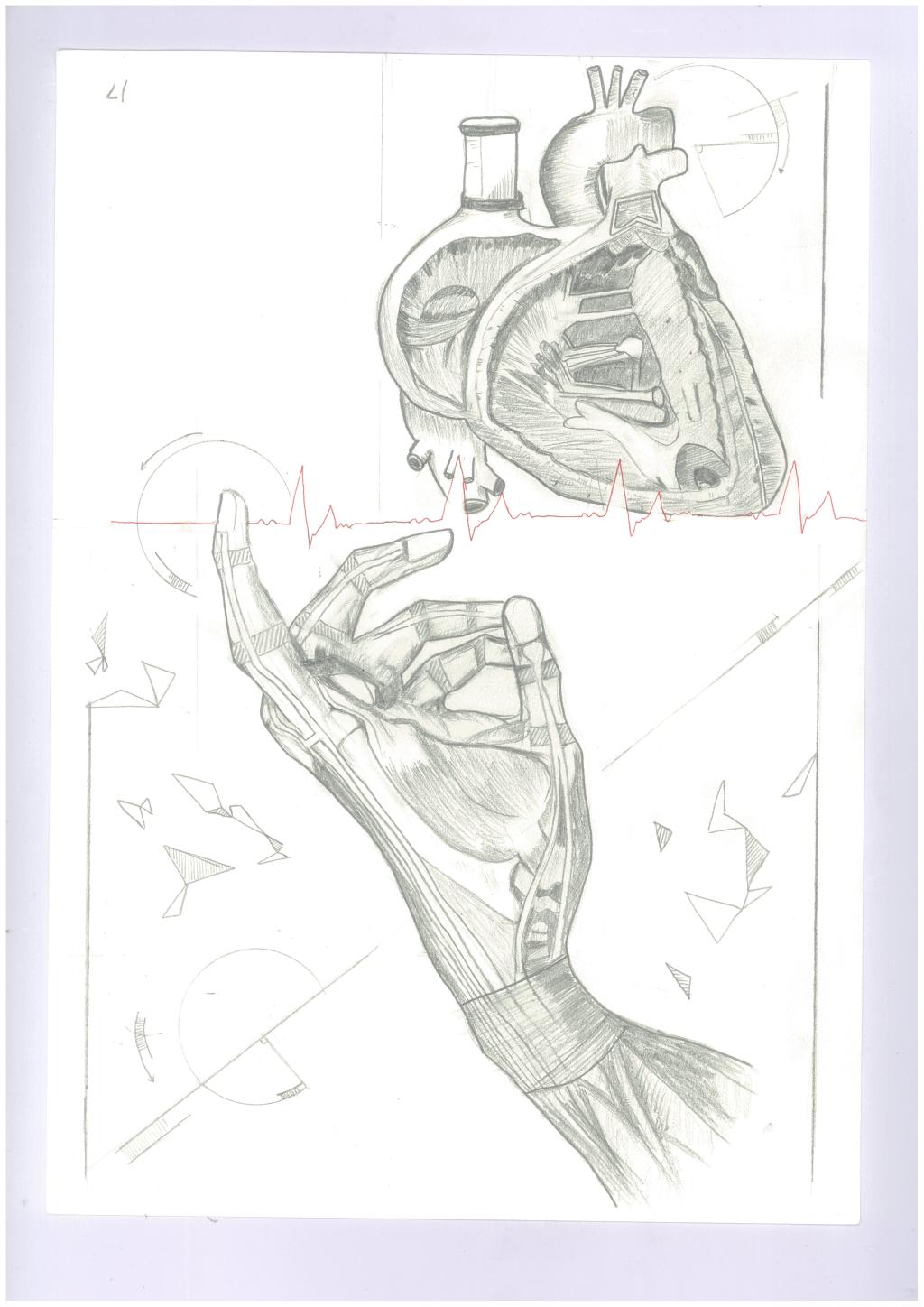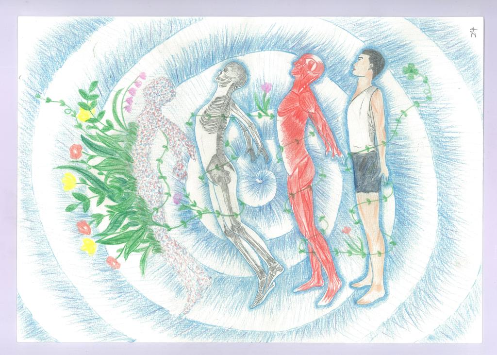 作品通过临摹小腿后部和足底的肌肉、血管、神经,展现人迈步向前奔跑的姿态,迸发生命的力量。