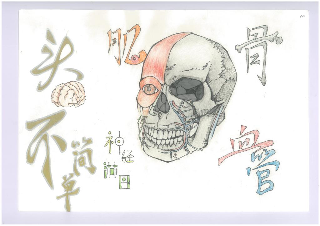 特等奖作品以颈部神经、血管、肌肉为创作点,加以造型设计和绘画技法的渲染,用鲜艳的颜色再现人体颈部之美。
