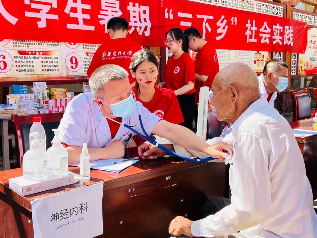 社会实践总队充分发挥专业所长,开展特色义诊、健康科普、急救知识宣讲等实践活动,在同行专家的指导下,大学生为当地村民测量血压,健康知识普及等活动,为行动不便的老年人“送医上门”,切实提高了群众的就医获得感与幸福感。累计开展健康义诊17场,惠及群众3500余人。