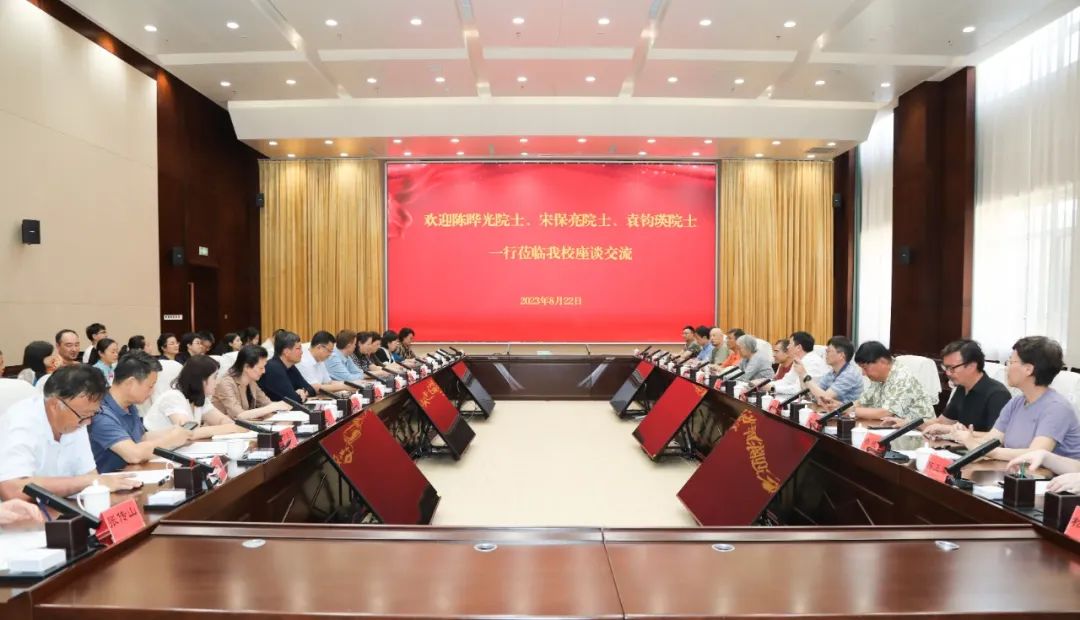 8月22日下午,中国科学院院士、南昌大学校长陈晔光,中国科学院院士、武汉大学副校长宋保亮,美国国家科学院院士袁钧瑛一行15人来到Beat365中国唯一官方网站,与校党委副书记、校长阿吉艾克拜尔·艾萨就如何推进学校人才培养、学科建设、科研工作开展交流座谈。副校长刘涛参加座谈会。