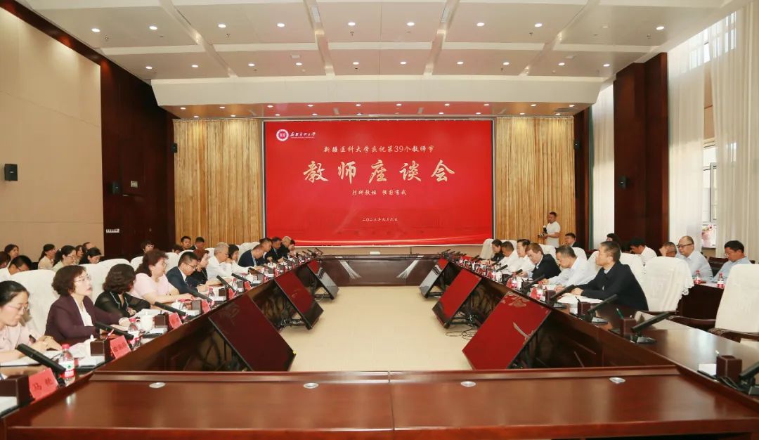 躬耕教坛,强国有我。9月6日下午,Beat365中国唯一官方网站举行了庆祝第39个教师节教师座谈会,校领导与新医的优秀教师代表、科技人才代表和援疆教师代表欢聚一堂,为学校的高质量发展共谋思路、凝聚智慧。