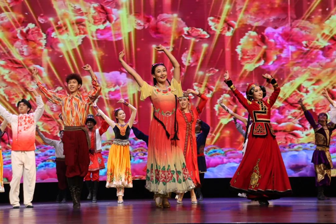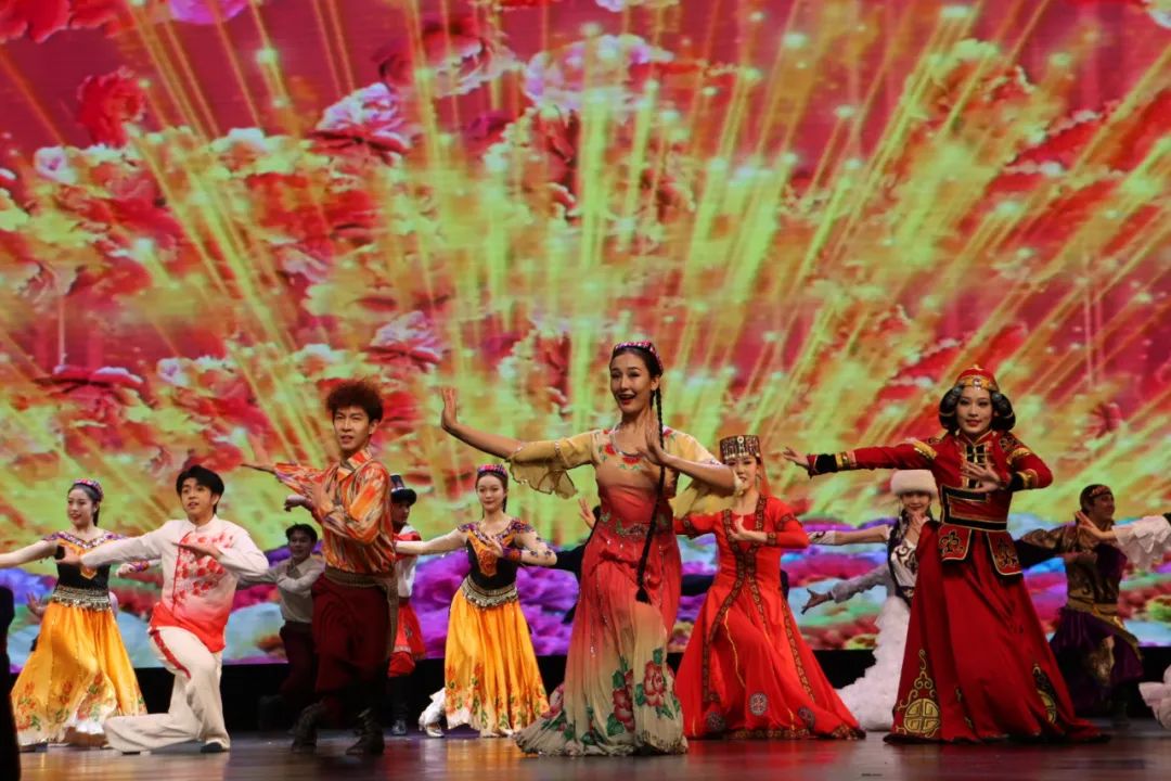 晚会在欢腾大气的开场舞蹈《中华民族一家亲》拉开序幕,大家用热情欢快的舞姿表现出了各族人民群众积极向上的精神风貌,展示出各族儿女对祖国母亲的依恋和祝愿。