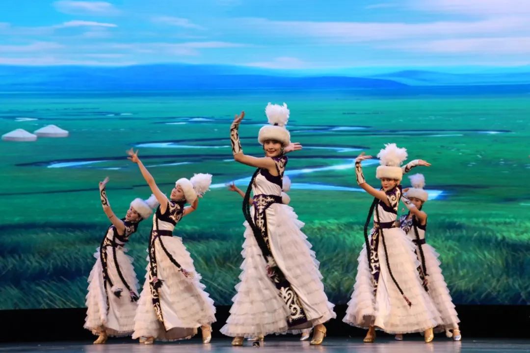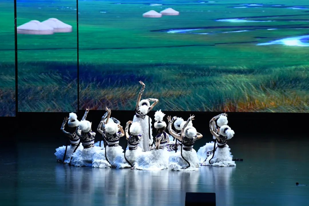 哈萨克族女子群舞《我的发》与蒙古族女子群舞《嗨登·萨吾尔登》用不同的民族特色呈现出美妙优雅的舞姿。