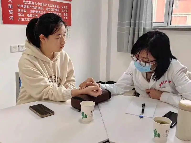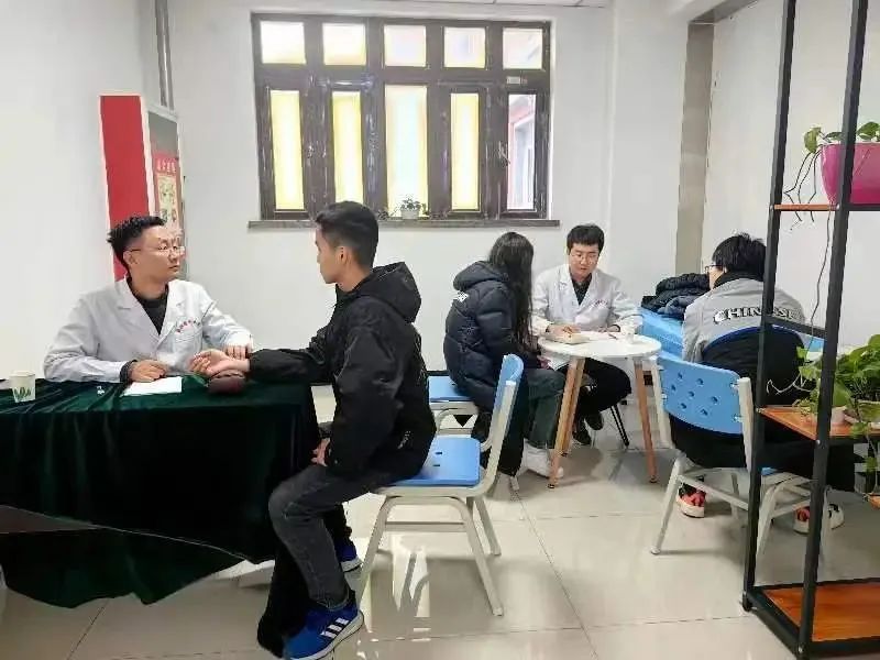 针灸推拿协会同学运用推、拿、按、摩、揉、捏、点、拍等多样手法,帮助同学们放松肌肉筋络,认真细致地为每位同学进行把脉问诊,提供针刺、推拿等中医特色疗法,指导同学们从中医治未病的角度进行自我健康管理。