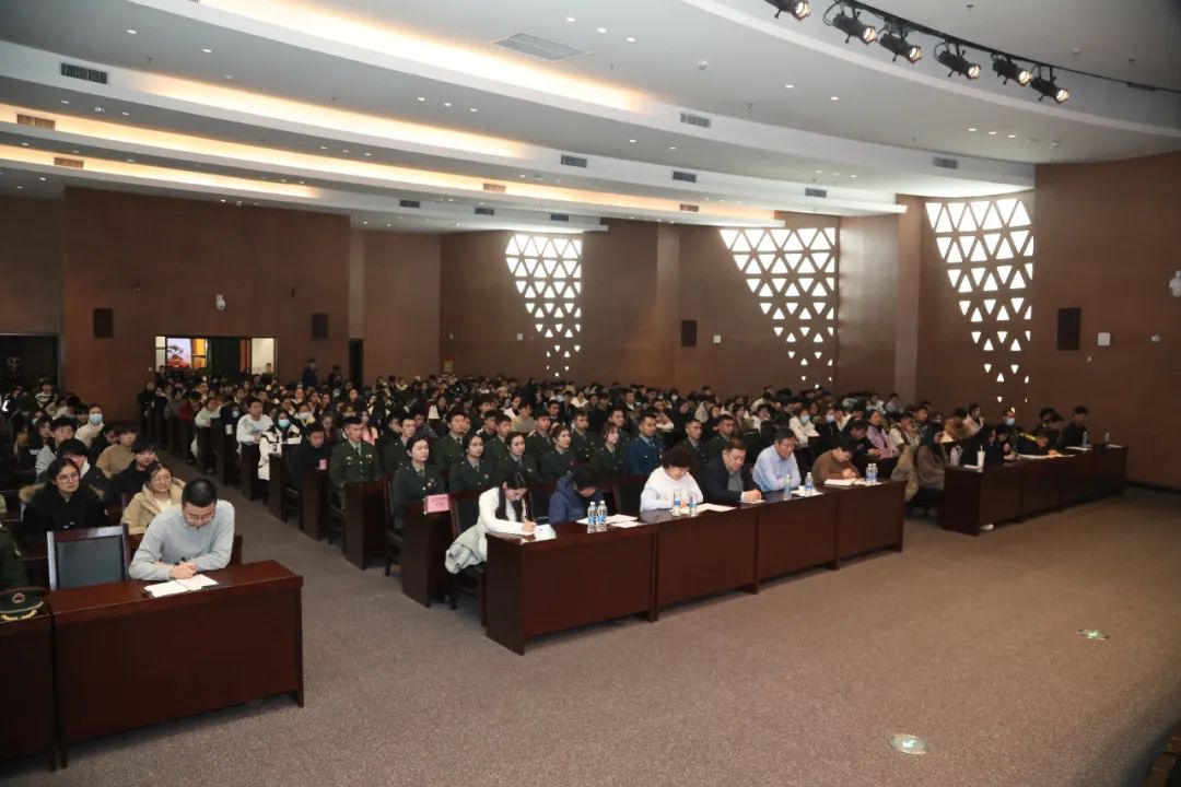 学校武装部、学工部、教务处、团委、人文学院负责人,以及各学院分管学生工作领导,历年退役同学代表,今年预报名入伍的同学和各学院学生干部代表300余人参加了会议。