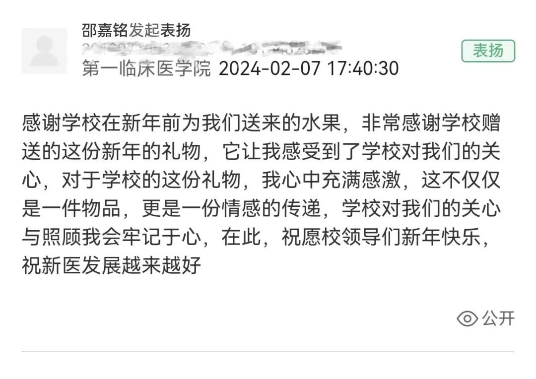 骨科2022级研究生西日艾力·卡迪尔:亲切的问候,暖暖的祝福,不仅让我们感受到了无微不至的关怀和家一般的温暖,更让我们充满了为梦想奋斗的力量!我们要不负重托,努力学习,提升自我的同时为学校争光添彩!