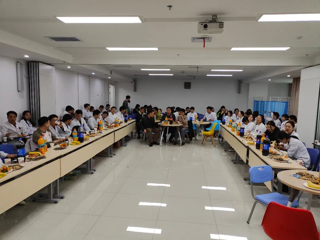 新春联谊会现场年味十足,餐厅内吉祥的“福”字,火红的中国结,无不洋溢着欢乐祥和的节日氛围。校党委副书记李剑峰在新年致辞中代表学校向同学们致以新年的问候和美好的祝福。学生阿卜杜萨拉木·图尔荪麦麦提代表留校学生,对学校的关心与陪伴表达感谢,并表示将常怀感恩、珍惜时光、努力奋斗,做一个有担当、有责任心的好学生、好医生。当晚,师生一起包饺子、畅聊生活、互送祝福,学校还为同学们准备的贴心的年夜饭,师生在欢声笑语间品味新春,共同迎接农历甲辰龙年的到来。