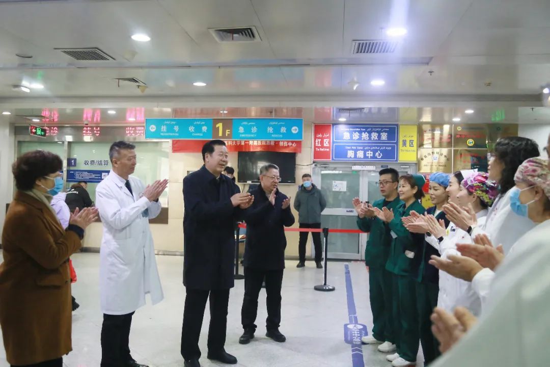 赵天杰书记、王爱民常委慰问第一附属医院急救·创伤中心值班的医护人员