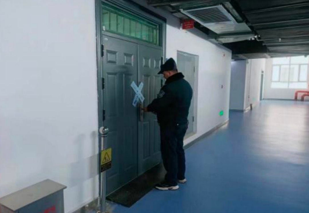 雪莲山校区学生公寓值班员常规检查公寓的消防设施