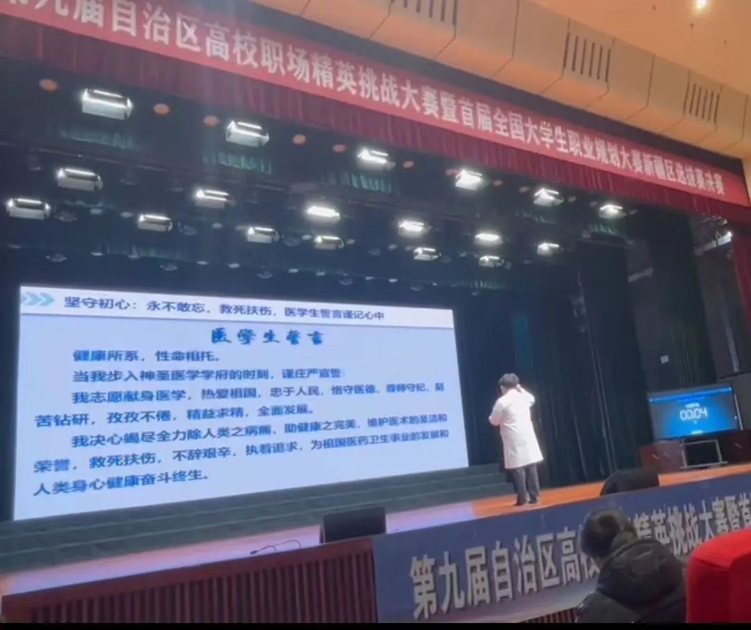 此次大赛自2023年10月份启动以来,在Beat365学生处及校团委的广泛动员下,各学院精心筹备、积极宣传,吸引了全校近千名同学报名。经过学院初赛、校级选拔赛,有4名同学代表学校参加了此次大赛,临床医学部的刘炳赟同学最终脱颖而出,顺利晋级新疆赛区决赛。