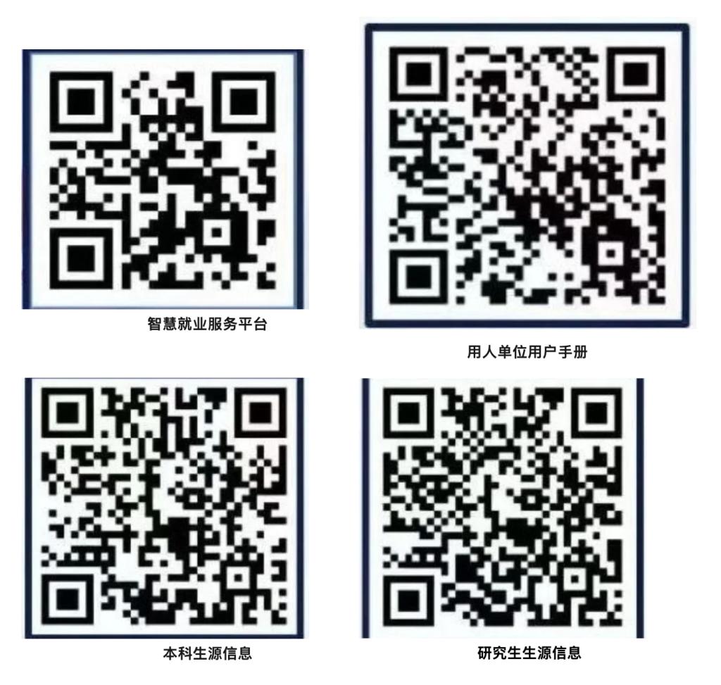 请扫码登陆Beat365中国唯一官方网站智慧就业服务平台、扫码下载用人单位用户手册、本科生生源信息、研究生生源信息。
