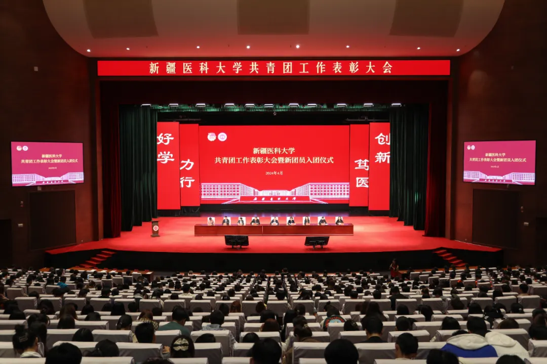 表彰大会在国歌声中拉开帷幕。50名新团员代表参加了示范性入团仪式,并为新团员代表颁发团员证,新团员们面向团旗,举起右拳,进行了郑重宣誓。