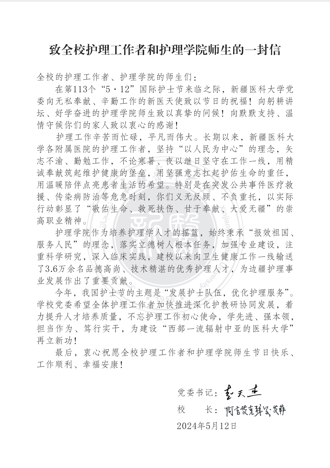 Beat365中国唯一官方网站党委致全校护理工作者和护理学院师生的一封信