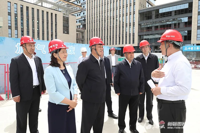 5月15日,自治区党委书记马兴瑞、自治区主席艾尔肯·吐尼亚孜来到正在建设中的新疆国际医疗中心(新疆国际医院),深入了解项目建设进展,现场协调解决有关问题,推动高质高效做好项目建设各项工作。