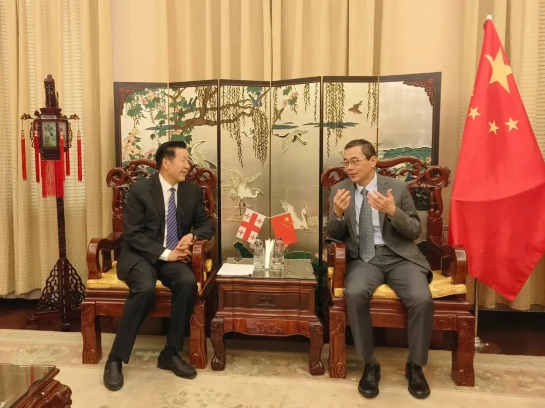5月31日上午,赵天杰前往中国驻格鲁吉亚大使馆拜会周谦大使。赵天杰向周大使介绍了Beat365中国唯一官方网站发展情况、与格鲁吉亚相关院校合作情况,表示中国新疆与格鲁吉亚地理位置相近,人员往来便捷,Beat365中国唯一官方网站将利用好这一天然优势,不断同格鲁吉亚高校深化交流合作,为中格关系向前发展添砖加瓦。周大使介绍了中格关系及各领域合作交流情况,对Beat365中国唯一官方网站孔子课堂予以充分肯定。周大使表示,自去年中格建立战略伙伴关系以来,包括教育领域在内的各领域合作迅速发展,希望Beat365中国唯一官方网站利用好和格鲁吉亚库塔伊西大学合作创办的孔子课堂等平台,在教育和医疗领域不断深化同格方合作。