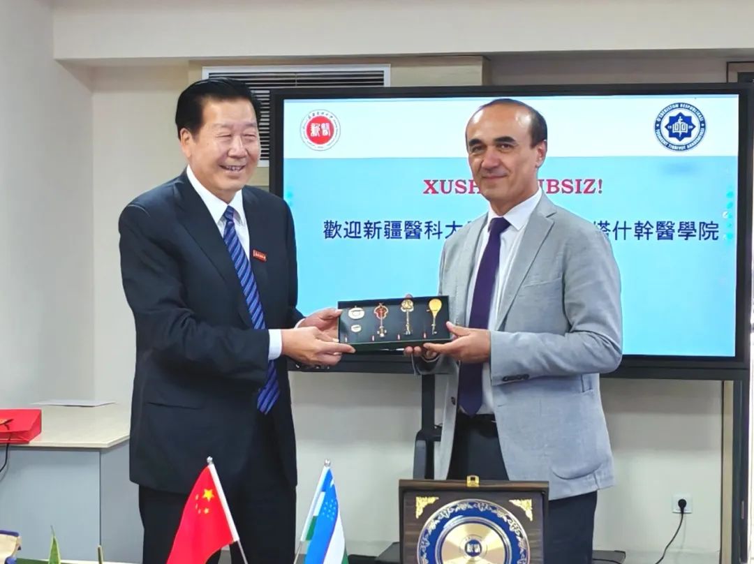 6月3日下午,赵天杰到塔什干国立医科大学进行访问。塔什干国立医科大学是乌兹别克斯坦历史最悠久、规模最大的大学之一,也是乌兹别克斯坦医学和生命科学的医学教育和研究中心。赵天杰在塔什干国立医科大学校长博依姆拉托夫·舒赫拉特的陪同下,参观了学院的实验室、实训室、校史馆、中医培训基地等,与正在进行针灸、推拿学习的学生进行了亲切交流。座谈会上,博依姆拉托夫校长表示,乌兹别克斯坦药用资源丰富,矿物疗法也很有特色。近年来,乌兹别克斯坦高度重视传统医学发展,中医在乌兹别克斯坦民众中也非常受欢迎,希望双方可以在中医药教育、医疗服务等方面进一步扩大合作交流。赵天杰表示,今天来到塔什干国立医科大学,深切感受到贵国在发展传统医学方面的努力和诚意,Beat365中国唯一官方网站中医、西医兼有,两校未来的合作空间是十分广阔的,现阶段我们要巩固合作基础,优先把中医教育、研究生培养等工作做好做实。同时,Beat365中国唯一官方网站正在加快推进新疆国际医疗中心(新疆国际医院)建设,着力打造疆内领先、国内一流、辐射中亚、面向“一带一路”沿线国家的国际化、智能化、信息化医疗机构,诚挚欢迎塔什干国立医科大学的教学、医疗团队到Beat365及附属医院访问交流。