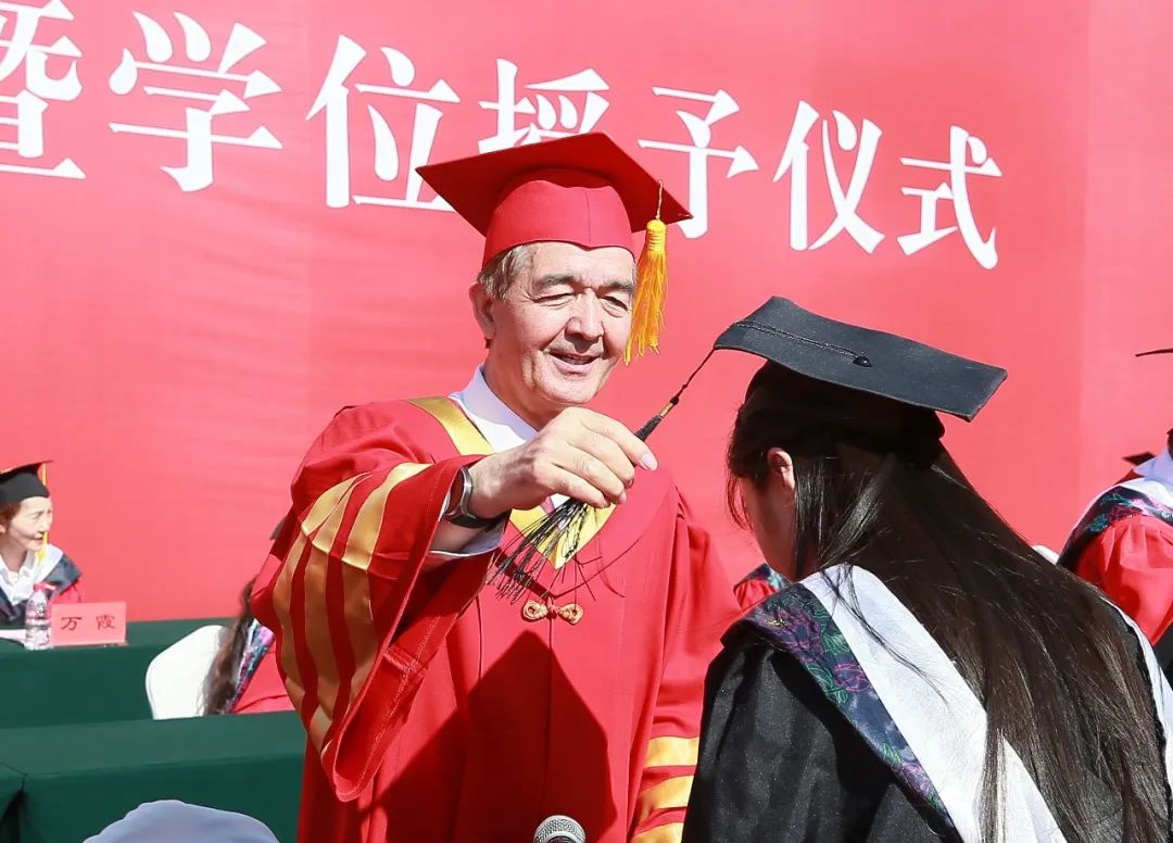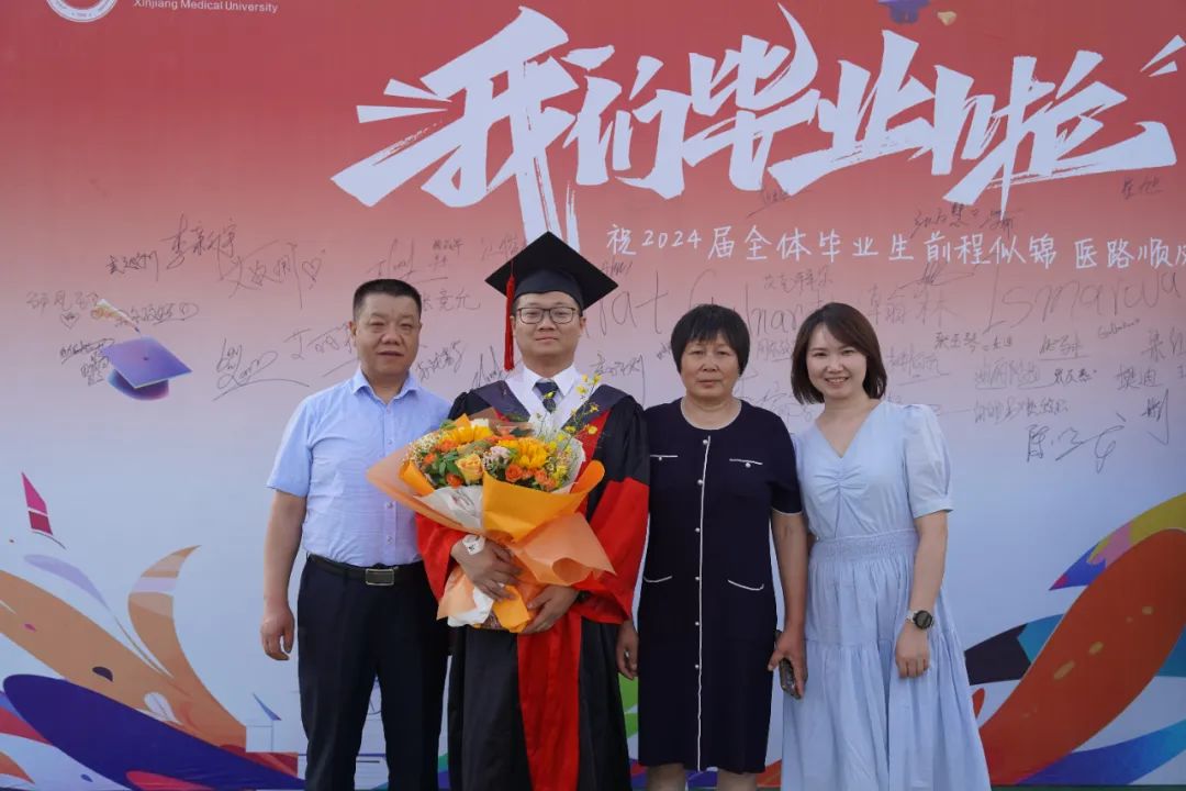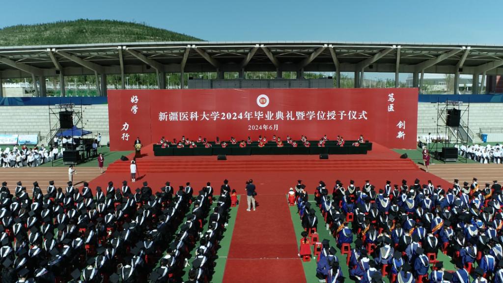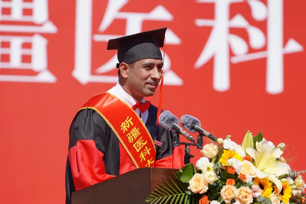 阿吉艾克拜尔·艾萨希望毕业生们始终秉持新医校训、传承新医精神,自觉维护医学职业的真诚、高尚与荣耀,主动践行“敬佑生命、救死扶伤、甘于奉献、大爱无疆”的崇高精神,勇敢启程、向光而行,奔赴祖国最需要的地方施展抱负、建功立业,努力守护人民群众生命健康,争做有情怀、有大爱、有温度的新时代好青年,共同为祖国的健康事业作出新的更大贡献。也祝愿同学们在追寻梦想的征程上,前程似锦,一路芳华!