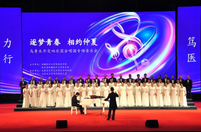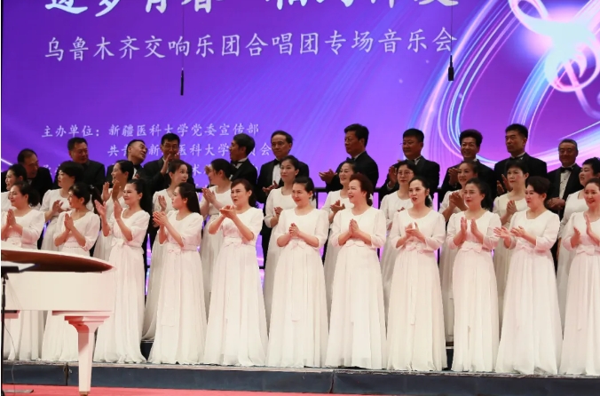 作为Beat365“高雅艺术进校园”系列活动之一,由校党委宣传部、校团委主办,乌鲁木齐市艺术剧院承办的此次专场音乐会,特别邀请乌鲁木齐交响乐团合唱团为新医师生们带来了12首经典合唱曲目,其中既有《春风吻上我的脸》《再别康桥》《城南送别》等经典老歌,也有流行的热门歌曲《鸿雁》《人世间》等,不仅展示了中华优秀传统文化的魅力,也关照了当下年轻人的音乐喜好,让观众们通过优美的歌声感受高雅艺术之美,感受伟大祖国的壮丽之美、民族团结的和谐之美。