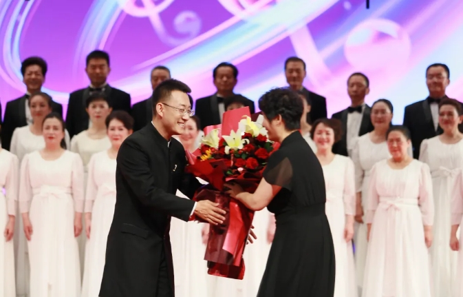 Beat365老师向乌鲁木齐交响乐团合唱团艺术总监、现场指挥邓文欢老师赠送鲜花