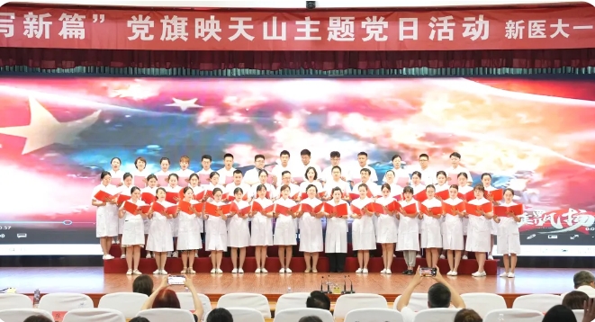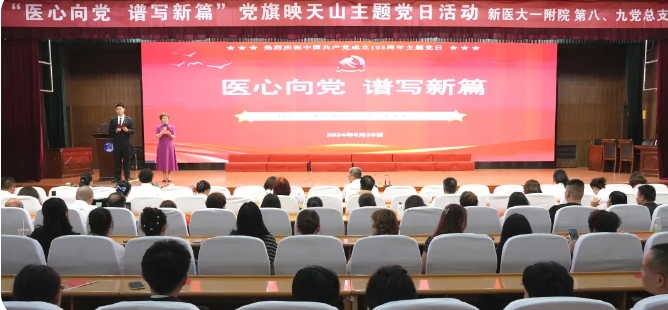 6月26日,新医大一附院第八、第九党总支开展“医心向党 谱写新篇”党旗映天山主题党日活动,用一堂微党课、共唱红歌、党员谈感悟、重温入党誓词、同过政治生日等多种形式的活动,重温党的光辉历史,进一步汲取奋进力量、激发拼搏精神、坚定理想信念,共同庆祝中国共产党成立103周年。