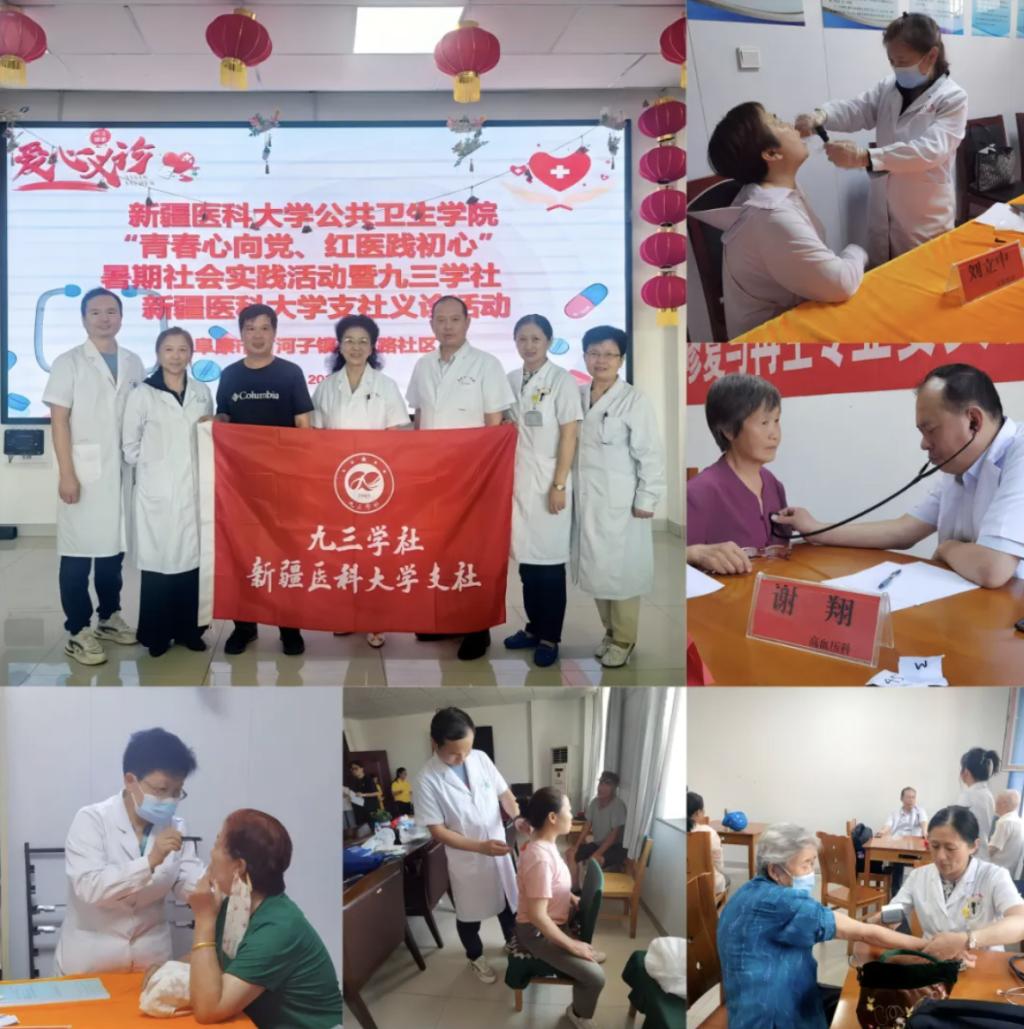 近日,为深入巩固开展纪律学习教育成果,切实把理论学习贯穿落实到具体工作和行动中,做知行合一的九三学社社员,社Beat365中国唯一官方网站支社组织医疗专家与Beat365中国唯一官方网站公共卫生学院暑期社会实践队前往昌吉州阜康市甘河子镇九龙社区,为200余名基层群众提供义诊服务并普及健康知识。