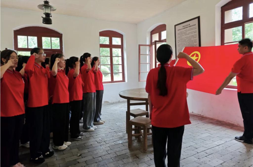 枣园曾经是中共中央书记处所在地,1944年至1947年3月,中共中央书记处由杨家岭迁驻枣园。实践团成员们在枣园旧址里开展了重温入团誓词仪式,铿锵有力的誓言,坚定不移的信心,彰显了青春风采与奋斗决心,这不仅是对那段光辉历史的深情回望,更是对我们青春誓言的再次宣誓。