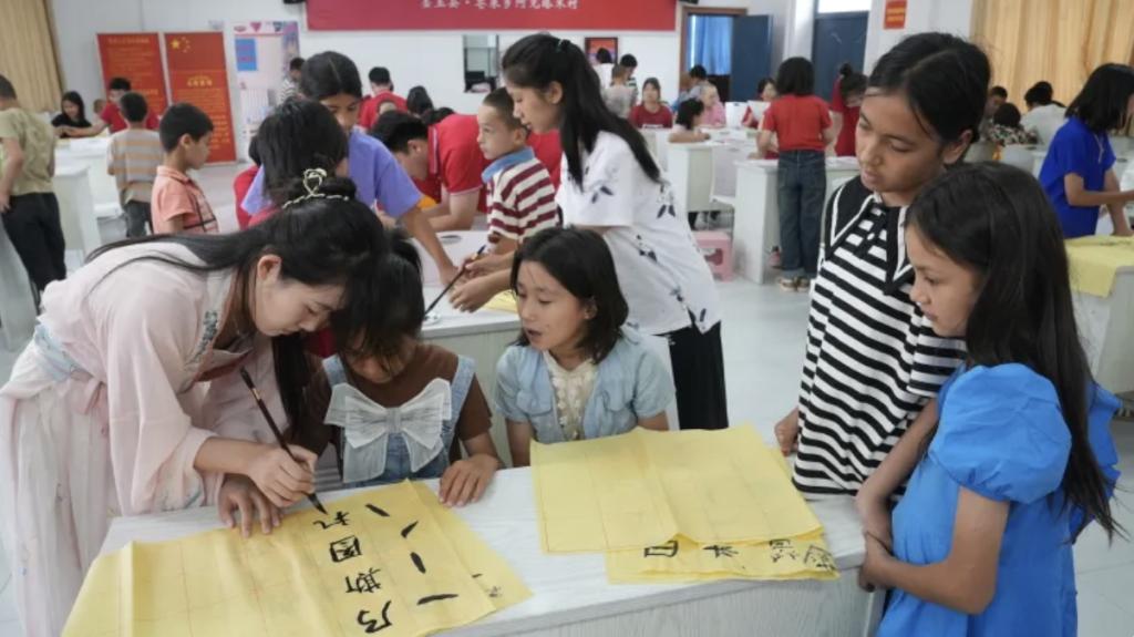 此外,志愿者服务队还开设了国学小课堂,为村里的孩子们带来了剪纸、书法、折纸、绘画等传统文化体验课程。在轻松愉快的氛围中,孩子们不仅学到了新知识,更感受到了中华文化的博大精深。这种寓教于乐的教学方式受到了家长和孩子们的一致好评。