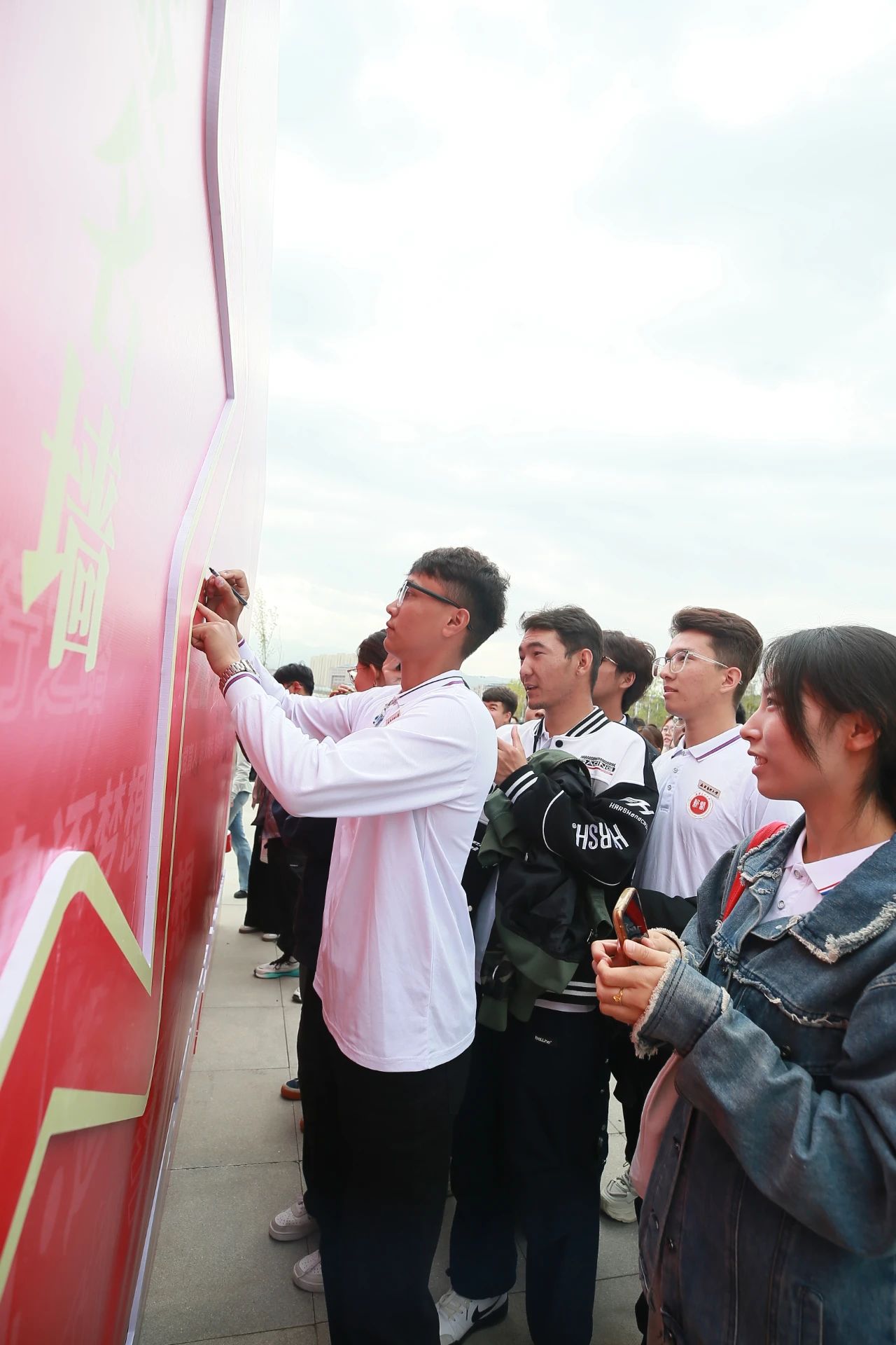 在签名墙上留下姓名