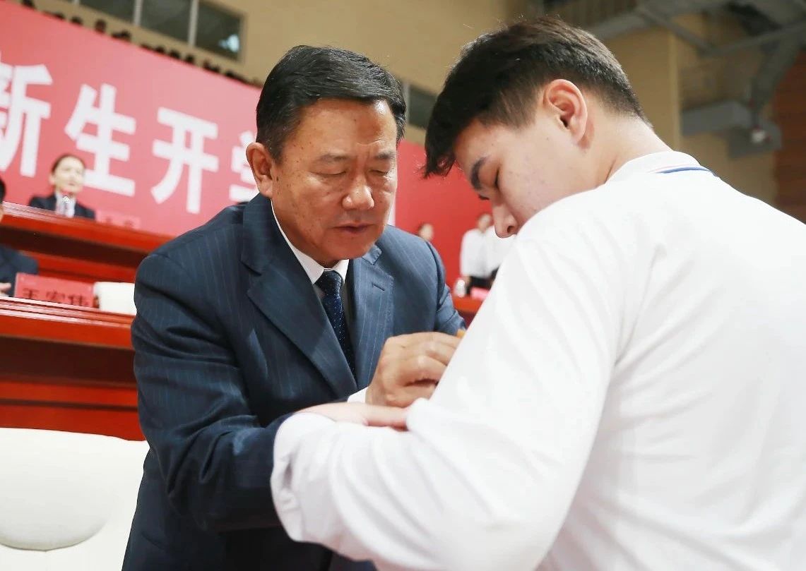 张英泽院士为新生佩戴校徽