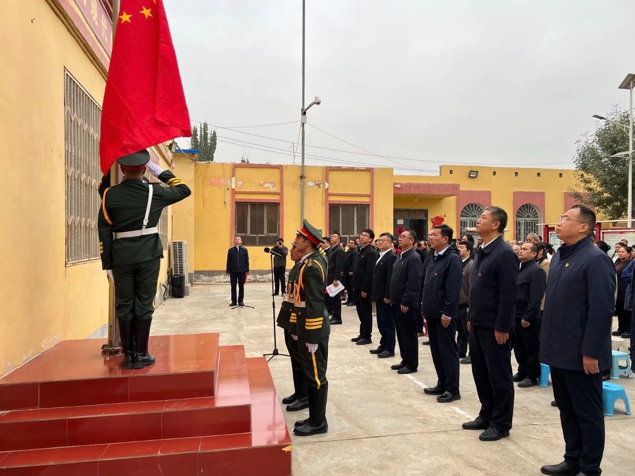 校党委书记柴林参加阿克塔木村升国旗仪式