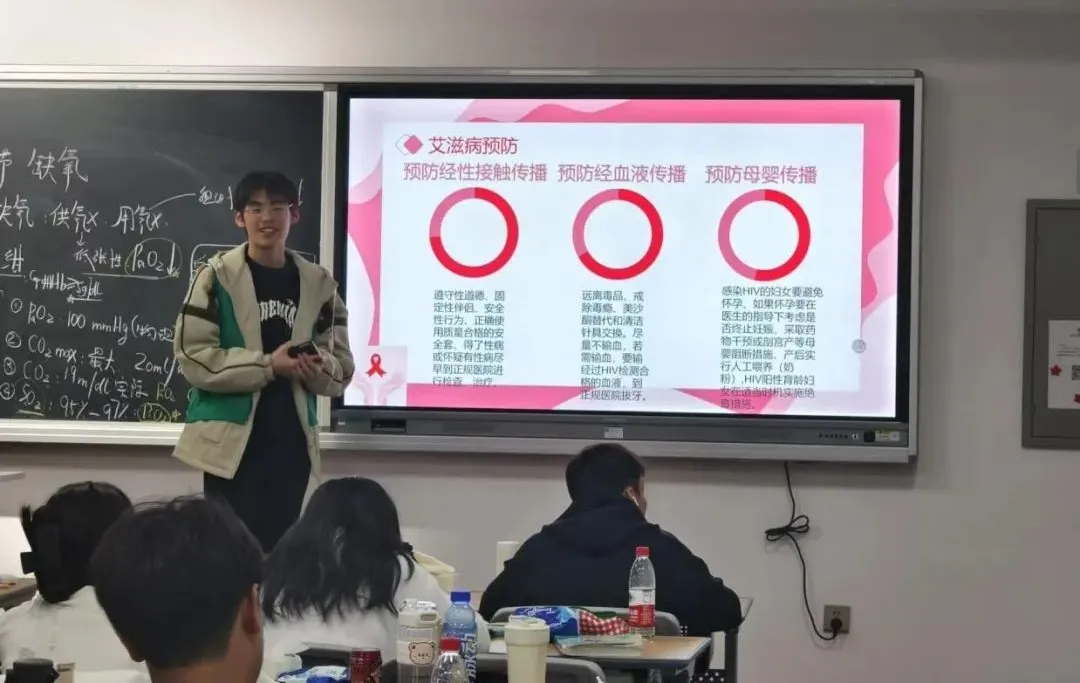 志愿者们开展艾滋病知识进班宣讲活动,向同学们普及艾滋病的基本知识,包括病毒的传播途径、艾滋病的症状和预防措施等。