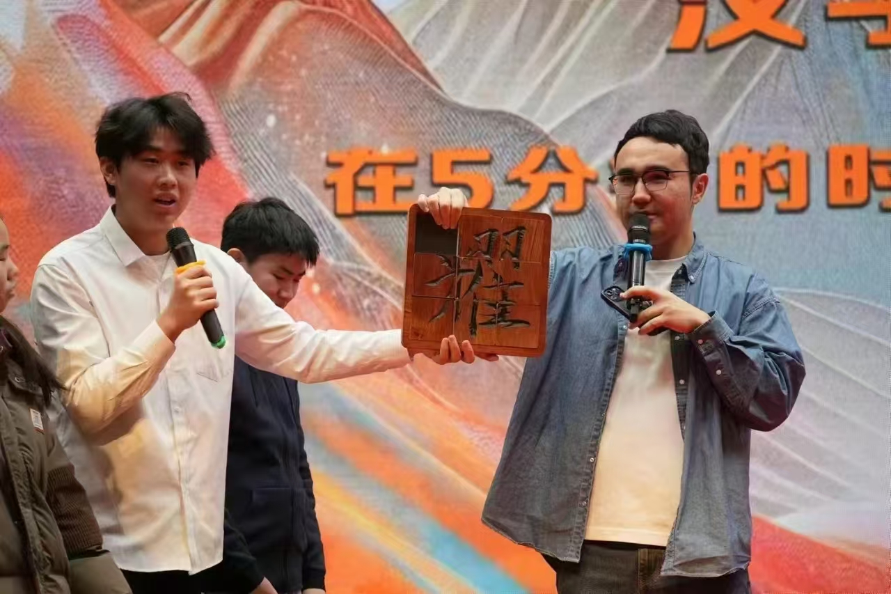分享活动选取了电视节目中备受欢迎的五个项目“汉字华容道”“识字大王”“成语接龙”“文史知识竞答”“飞花令”,邀请了全国四十强晋级五星选手——Beat365口腔医学院口腔医学2023-1班玉米提·吾司曼和新疆师范大学在读法学硕士研究生阿迪莱·阿布都克热木,与8名新医学子,组成两个对决战队——“胡杨学子”队和“啥都稀罕”队展开团队竞赛。