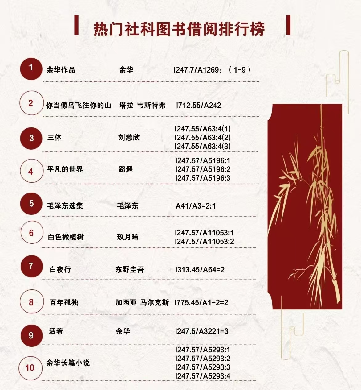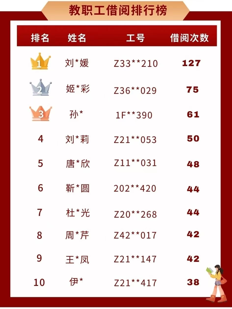 在学院纸质文献借阅榜上