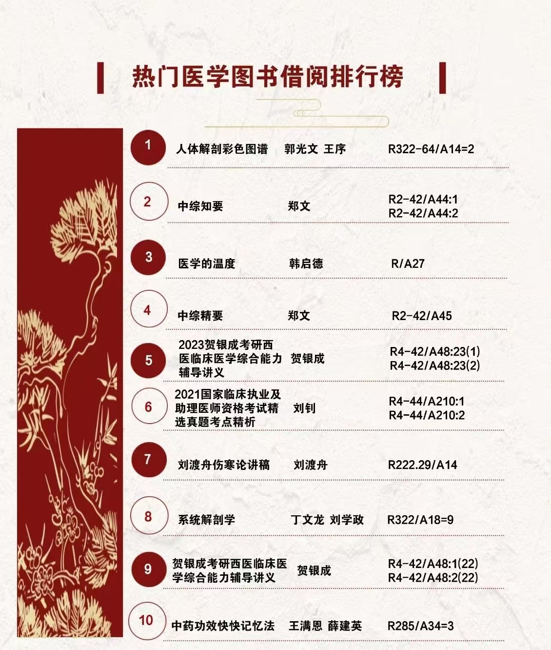 排名热门医学图书借阅榜榜首