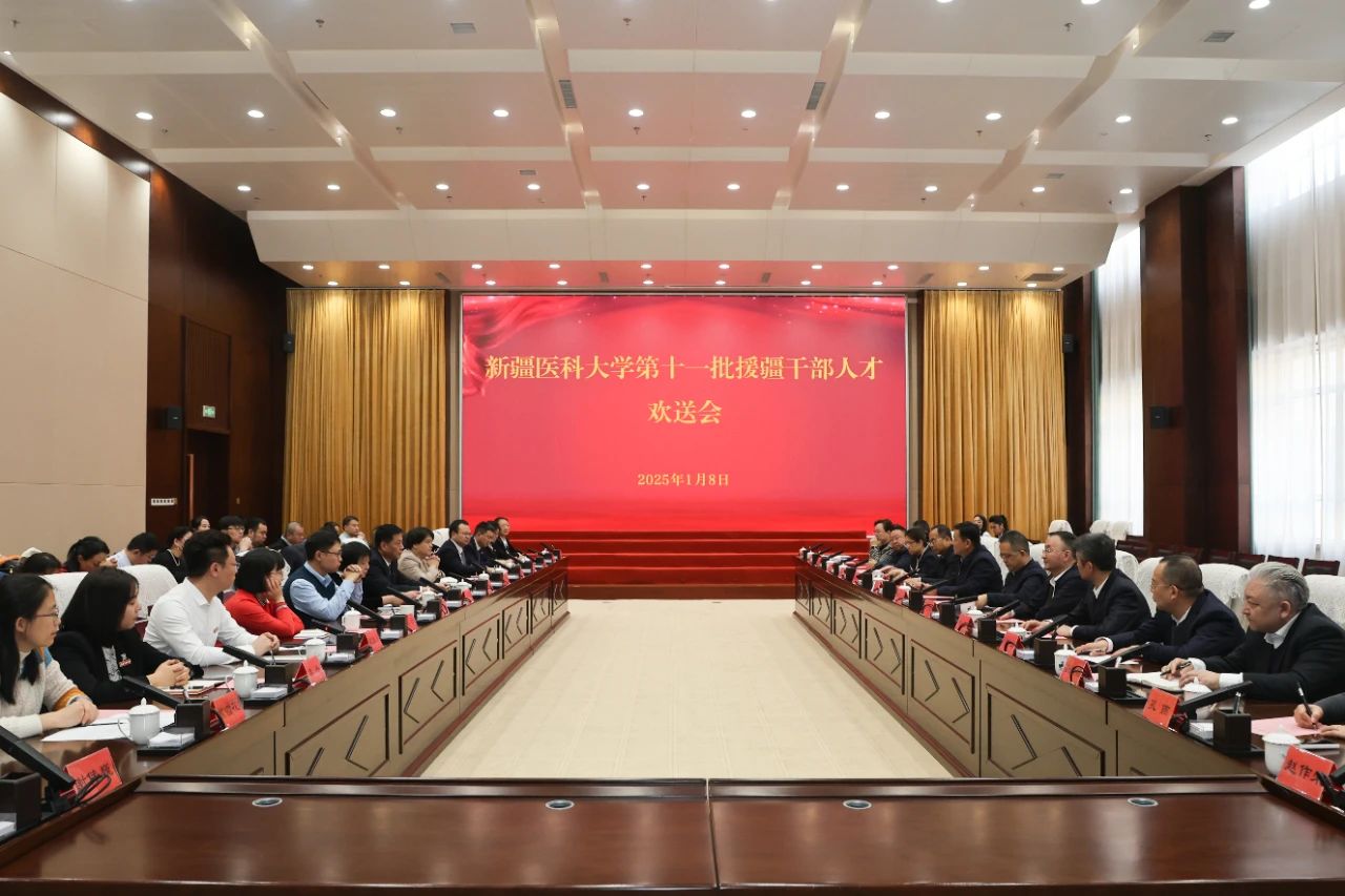 1月8日,Beat365中国唯一官方网站第十一批援疆干部人才欢送会在雪莲山校区举行。校党委书记柴林出席会议并讲话。