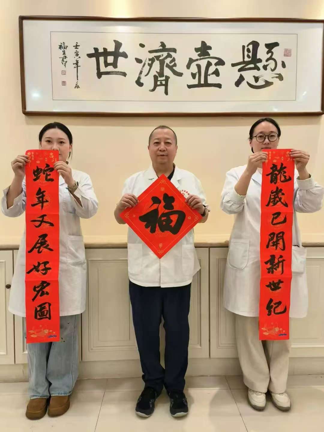 第四附属医院(第四临床医学院)邀请七位新疆书法家协会书法老师写新春对联,并为门诊的职工们送上春联以及美好祝福,让大家感受到春节的温暖。