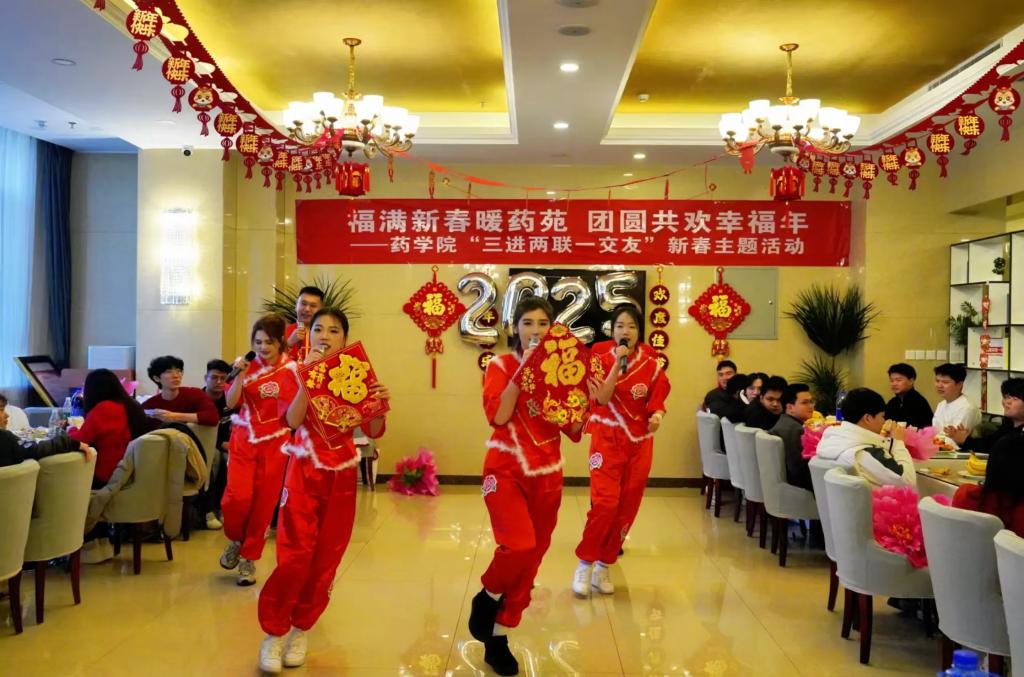 药学院开展了“福满新春暖药苑·团圆共欢幸福年”三进两联一交友新春主题活动,师生一起做游戏、演节目、吃饺子、送祝福,活动现场欢声笑语,浓浓的年味在空气中弥漫。
