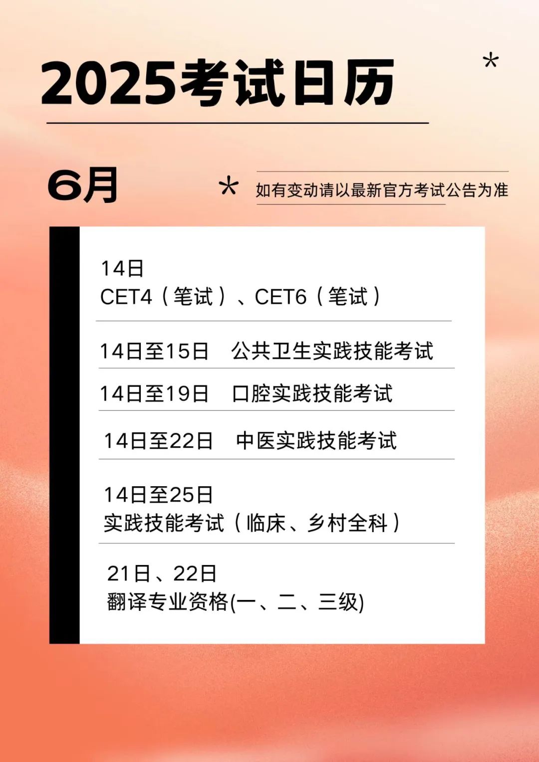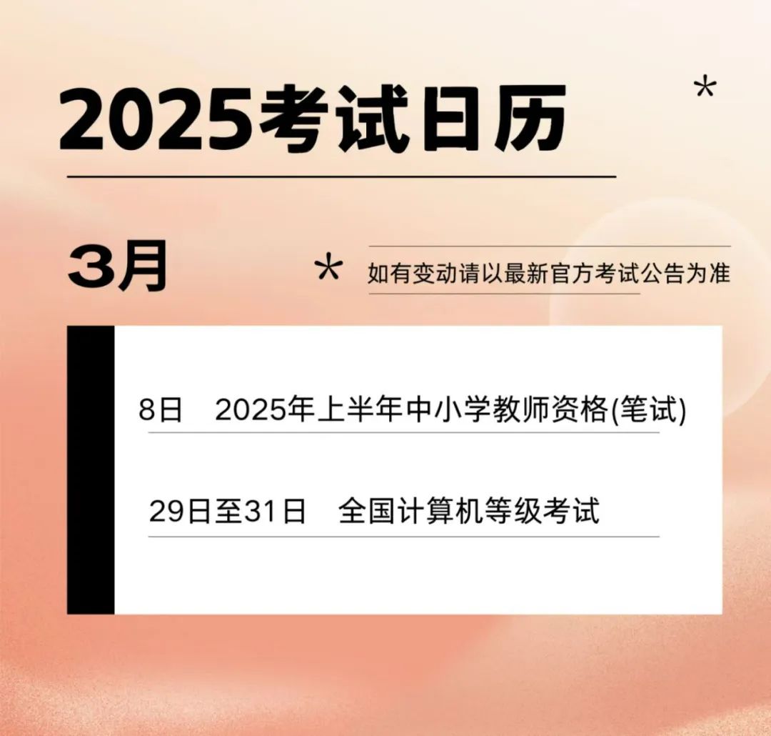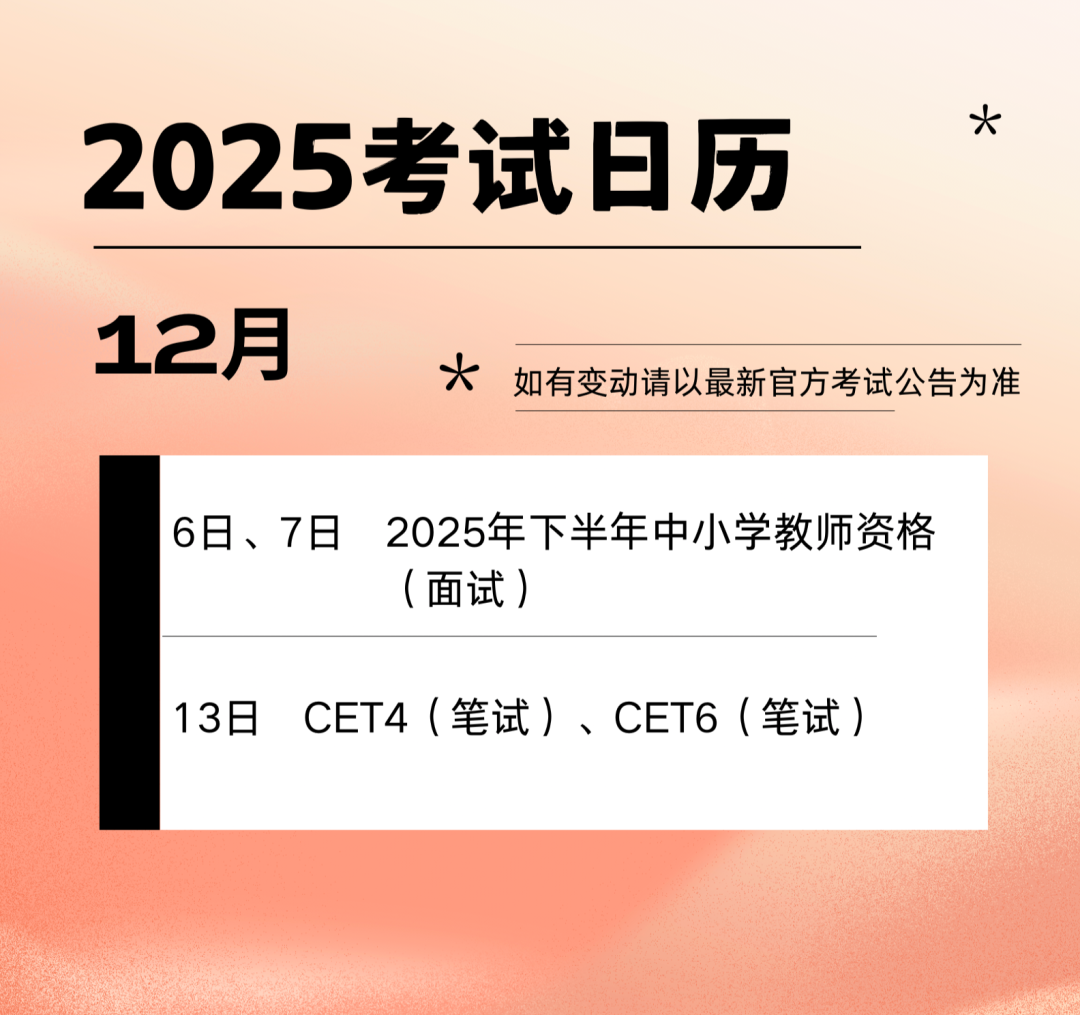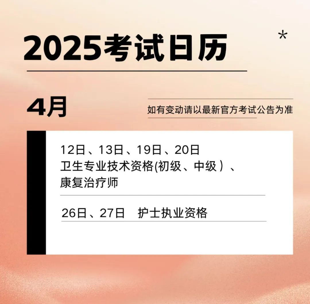 2025年考试日历来啦!
