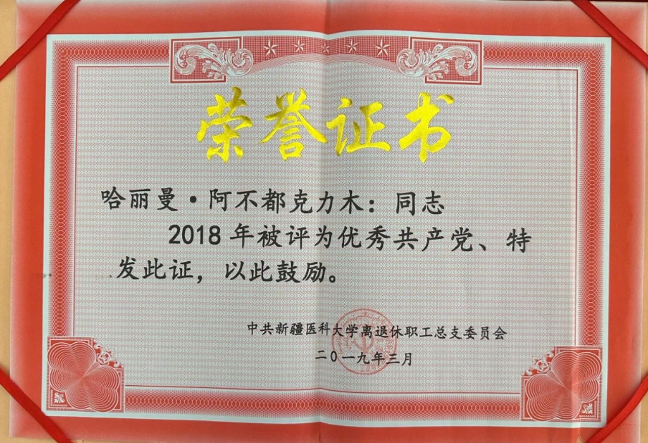 哈丽曼·阿不都克力木获评2018年度优秀共产党员荣誉称号