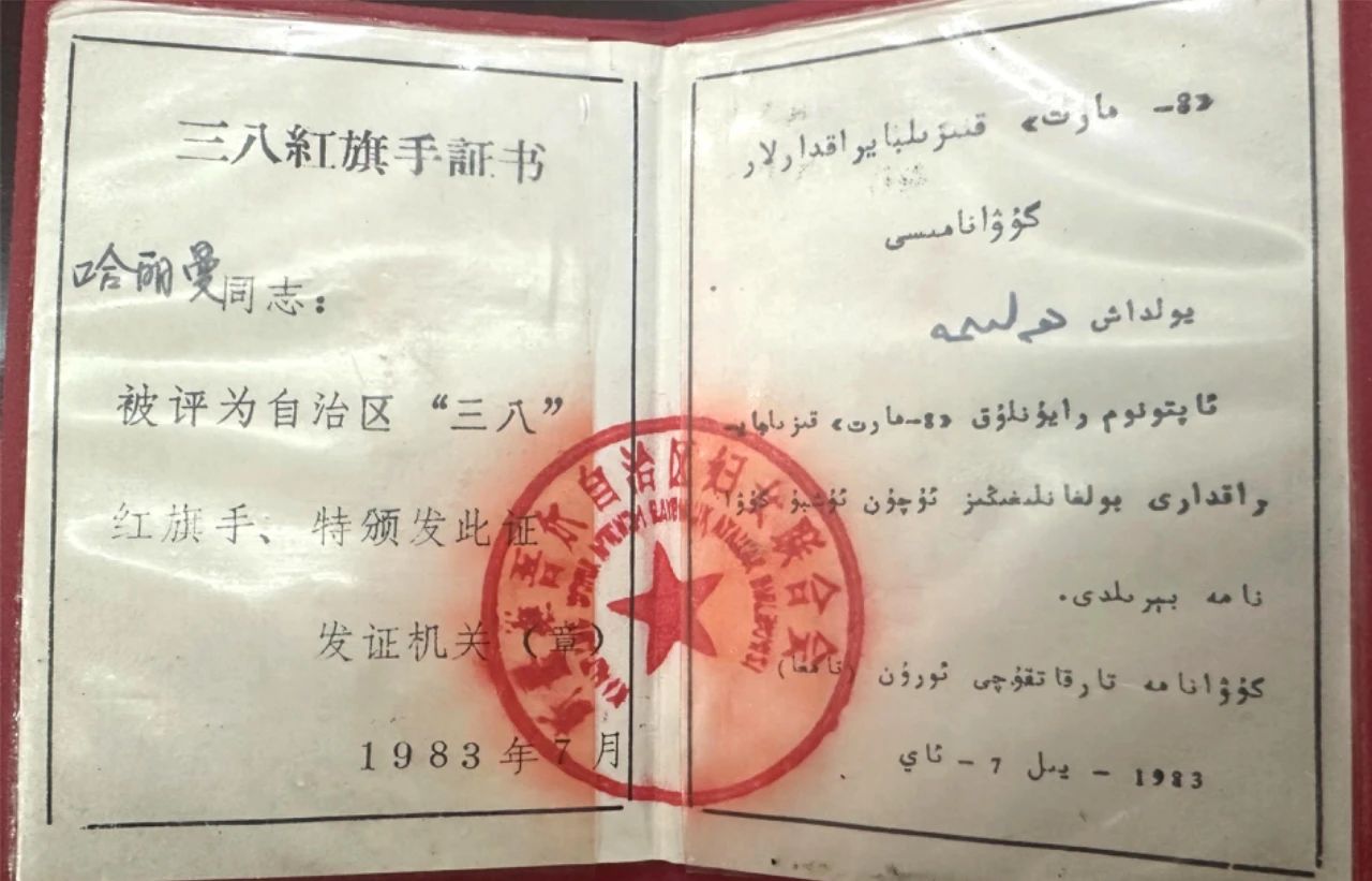 1983年7月,被评为自治区“三八”红旗手