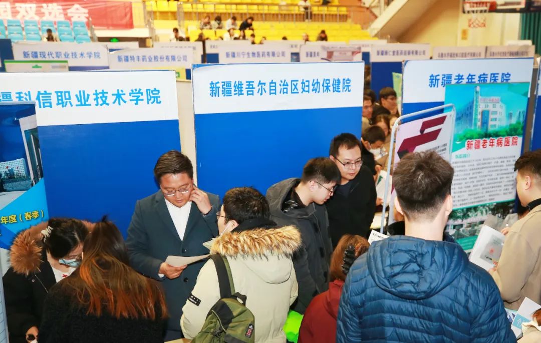 校园双选会上,疆内外各医院、生物医药名企、科研院所等单位同台亮相。安邦(新疆)生物科技有限公司经理陈海华表示:"新医学子专业素养过硬,今年我们早早整理出岗位需求,在看到招聘会邀请函就立刻报名参加了!"